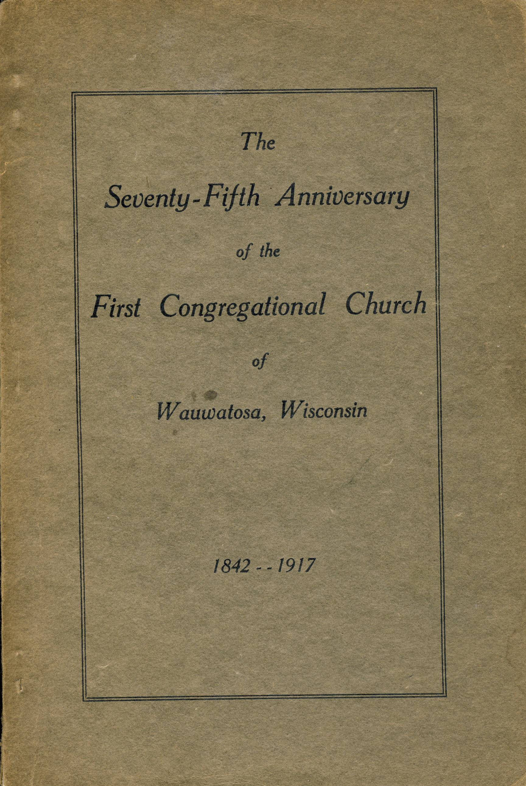 This is a historical reference document from the archive files of the First Congregational Church of Wauwatosa that reflects Seventy Fifth Anniversary in 1917.