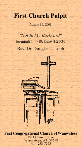 In essence, they were saying, Not In My Backyard. Our God isn’t an embracingloving unpredictable God like that. We understand our God. Don’t tell us about God accepting outsiders.