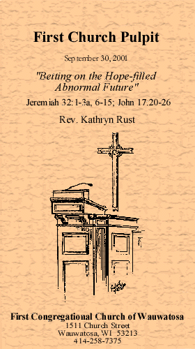 And so this lesson reminds that community and OURS to bet on the future that God indwells, even when our present tense experiencesare dire. And when things looked dark God told Jeremiah to have HOPE and buy land.