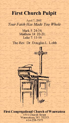 But people of faith defy logic: they go on.  They overcome.  They do not sink.  So, we are gathered to worship a God we do not fully understand, a God who speaks to us out of mystery.  Yet we proclaim our faith in the way of Jesus Christ.  We can get out of the safe, dry, boat and walk on the waves of difficulty and trouble that we face.  We do so with the assurance of Matthew.  “Surely, you are the Son of God.  I can make it –– because you touched me!”