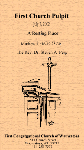 Now, contrast this concept with what Jesus said. He tells the people who accuse him that "wisdom is vindicated by her deeds." Yet, his great deed, and his wonderful words are an invitation to a resting place. He says, "Come to me, all you who are weary and carrying heavy burdens and I will give you rest. Take my yoke upon you and learn from me; for I am gentle and humble in heart, and you will find rest for your souls. For my yoke is easy and my burden is light." We keep missing the point, as did the earliest followers of Jesus that the true frontier is within us. Our truly manifest destiny is to be at one with the Creator, Redeemer, and Sustainer of all that is. Our pilgrimage is not to a place, but to a person, to a relationship, with God. Jesus' invitation to follow him begins first with an invitation to come to him and learn from him the way of relationship and rest.