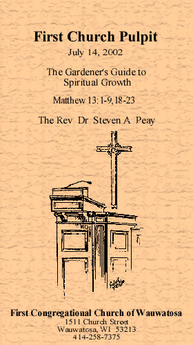 Who would ever think that a profound spiritual message could begin so simply?  Yet, Jesus' teaching in parables used simple concepts in simple words to bring home life-changing truths.  Technically this passage is called 'the parable of the sower,' but I think it could aptly be named 'The Gardener's Guide to Spiritual Growth.'  Before we take a closer look at this guide I'd like to spend a moment or two on parables.  Over the next several weeks we're going to be hearing a series of Jesus' parables in Matthew's Gospel and a quick refresher on their form might be helpful.