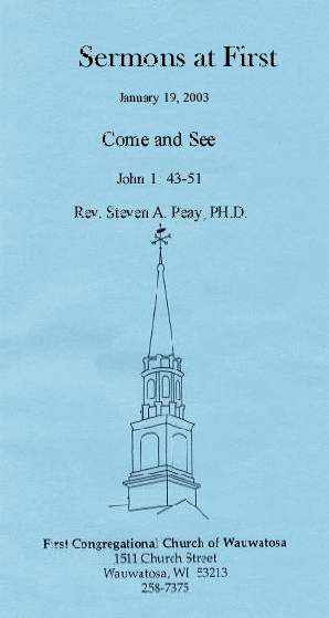 Now, that doesn’t mean that there won’t be times that we will have our doubts about the voices we’re hearing or the direction we’re taking. Nathanael, for example, was more than a little skeptical about Philip’s report and invitation, “can anything good come out of Nazareth?” But there was that line again, “come and see.” Don’t just take my word, experience it. Come and see what it’s like when people open themselves to the love of God and, in turn, love one another. Given the experience of the last thousand or so years, not to mention the more recent past, folks may be justified in their skepticism. Nathanael’s question is a good one. We could ask, “Can anything good come out of First Church?” “Can anything good come out of the Congregational Way?” We could also ask, “Can anything good come out of our world?” “Can anything good come out of me?” There’s only one way to find out, isn’t there – “Come and see.”