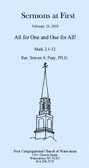 God has placed faith in us and now expects us to do something with the gifts and talents we have – and have in this faith community in abundance. To hear the ‘yes’ and know the truth of “all for one and one for all” only makes sense if it also makes us and our world different, better, more like the love that God has for us, as a result. As usual, there are some hard questions for us to answer. Are we willing to take the risk of allowing our comfortable believe to turn into risky faith? Are we willing to extend ourselves in relationship, as God has, so that “all for one and one for all” can become a reality in this faith community?