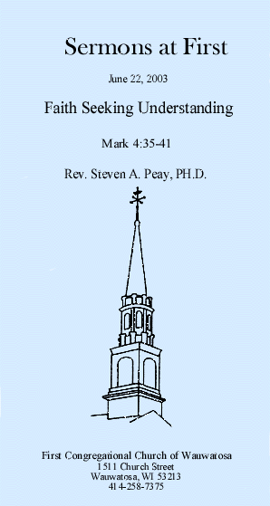 In Mark’s Gospel Jesus wakes up in response to that question and says, “Peace. Be still.” The winds and waves are calmed and he, in turn, asks questions. “Why are you afraid? Have you still no faith?” Mark’s point, I believe, is not so much to point to who Jesus is as to remind us who we are and how we are to relate to God. There is little question that he’s also trying to paint a picture to remind us that an encounter with Jesus is an encounter with God, a God who looks for us and for our trusting response to the Divine presence. So, the opposite of faith in Mark’s Gospel is not unbelief, rather it’s fear. Fear is the sign, the symptom if you will, that we have not placed our trust in God, in God’s power, and in God’s ultimate will for our good.